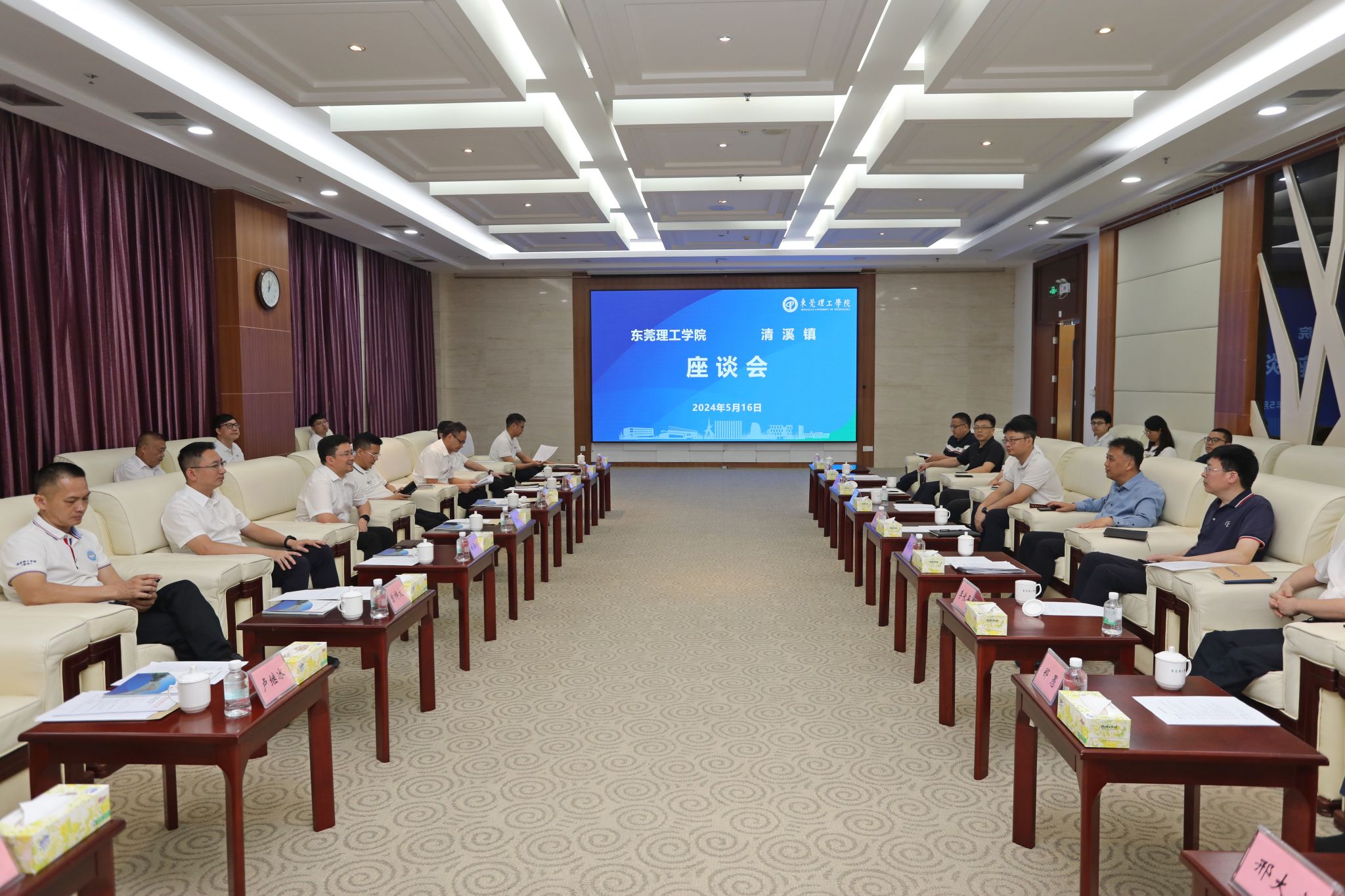 5月16日,东莞市清溪镇党委副书记、镇长沈志攀率政企代表到我校调研,推动校地合作。