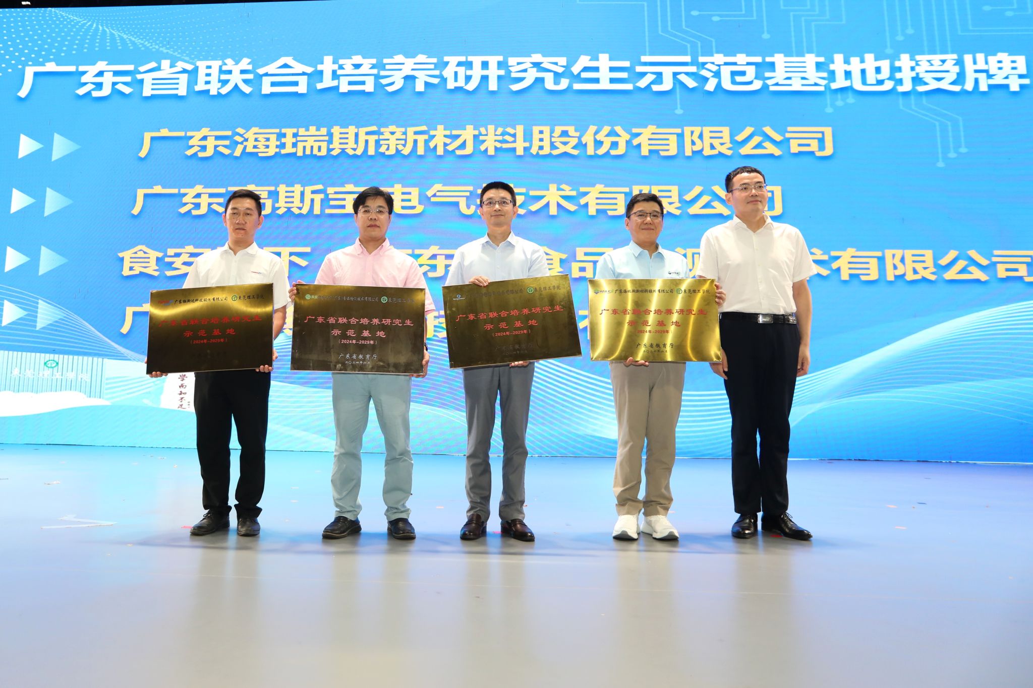 会上还对优秀导师和优秀研究生教育工作者进行了表彰,并为广东拓斯达科技股份有限公司、广东高斯宝电气技术有限公司、广东海瑞斯新材料股份有限公司、食安天下(广东)食品检测有限公司等四家广东省研究生联合培养示范基地授牌。