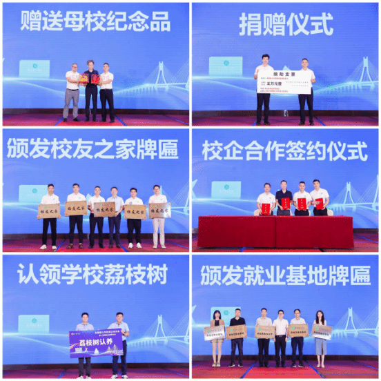 会上还进行了捐赠仪式、认养荔枝树环节,湛江校友会(联络处)捐赠5万元支持学校建设与发展,并认养学校荔枝树。同时,学校为湛江知名企业颁发了毕业生就业基地牌匾,为校友企业颁发了校友之家牌匾。