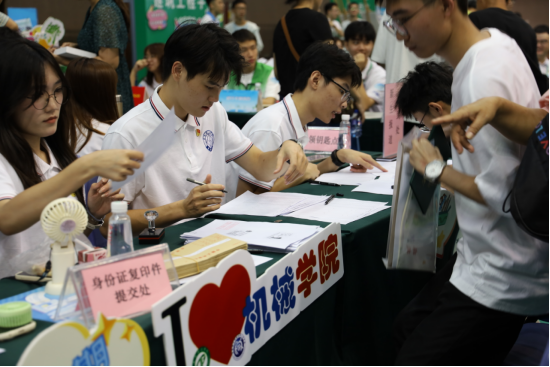新生报到现场,近500名师生党员悉心指导新生办理报到手续,各学院师生党员积极投身迎新工作,主动亮身份、做表率,以饱满的热情投入到核验身份、宿舍引导、咨询服务、发放材料等系列工作中,用自己的实际行动将红色温暖传递给每一位新生。