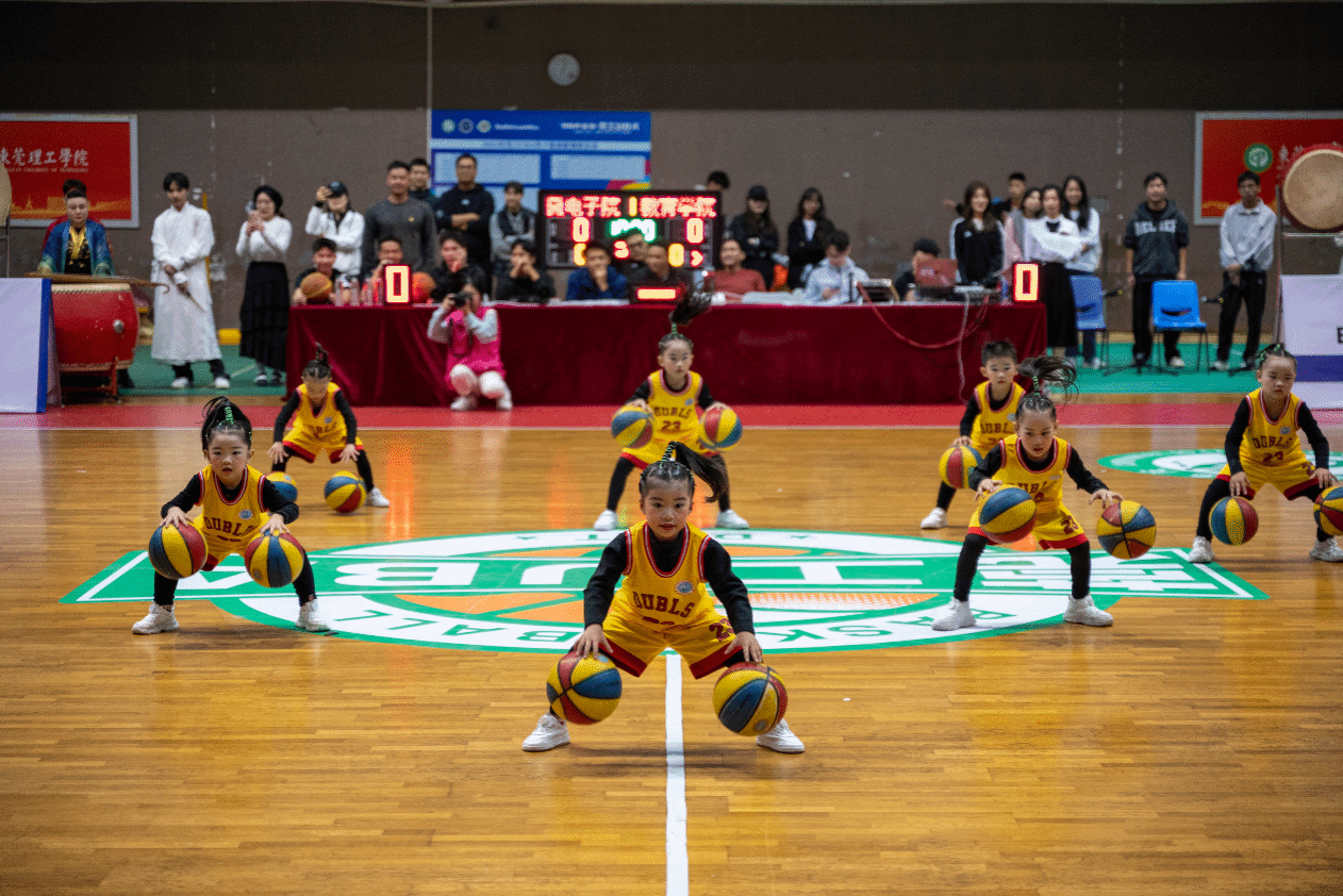 决赛当晚,松山湖校区体育馆内人声鼎沸,学校党委副书记、校长马宏伟,学校党委委员、党委宣传部部长邹琼等领导嘉宾与学生球迷共同到决赛现场为球员加油打气。随着裁判的一声哨响,2024年莞工UBA冠军争夺赛在教育学院(师范学院)和国际微电子学院之间展开。双方球员迅速进入状态,展开激烈的攻防大战,传球、突破、抢断每一个动作都扣人心弦,每一个进球都引来球迷的阵阵欢呼。除双方球员场上精彩比赛外,总决赛现场带来了花样篮球操、琵琶武术融合节目与街舞等形式丰富的暖场节目表演,赢得现场观众阵阵掌声。经双方四节比拼,教育学院(师范学院)凭借场上更优秀的表现,夺得冠军。