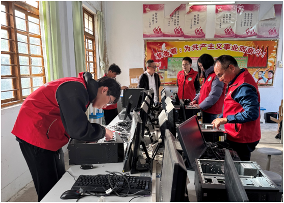 这不是“双百行动”科技志愿服务队的第一次行动。2024年初,我校依托现代教育技术中心专业技术与人才优势,组建“双百行动”科技志愿服务队,主动靠前服务,深入结对共建的新丰、普宁、浈江等地的中小学校,以技术服务支持保障基础教育。现代教育技术中心党支部高度重视此项工作,加强党建引领,把支部党建与业务工作、“双百行动”、“两全一融”等深度融合,创建“e路同心”党建品牌,组织技术骨干加入服务队,中心领导和党员干部率先垂范。2024年上半年,该志愿服务队开展首次专项行动,走进新丰、普宁、浈江的中小学(成员校)检测维修电脑、一体机等设备近600台,切实解决了实际困难,为教育教学工作提供了有效保障,深受欢迎和好评。