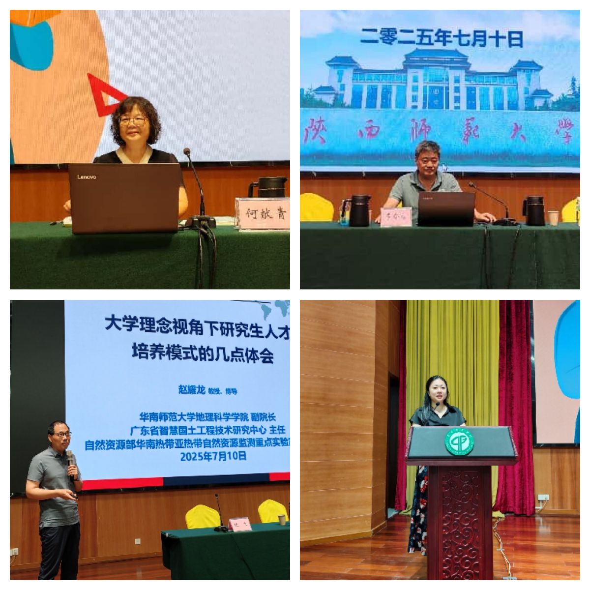本届培训班,校内外多位专家围绕研究生培养的关键问题作了精彩报告。机关党委书记何献青同志以《弘扬教育家精神 做学生的引路人》为题,结合自身经验,阐述了新时代导师的师德要求与育人职责,强调导师应以身作则,成为学生成长路上的引路人。华南师范大学赵耀龙教授从大学理念视角出发,分享了研究生人才培养的深刻见解,为导师们提供了理论指导和实践参考。陕西师范大学李令福教授以《团队例会六个一——我的研究生培养方法》为题,介绍了团队管理和研究生指导的具体方法,内容实用,深受导师们好评。此外,研究生院宋雪晶博士还对学校研究生管理制度进行了专题解读,帮助导师熟悉学校研究生管理相关政策,规范培养流程。