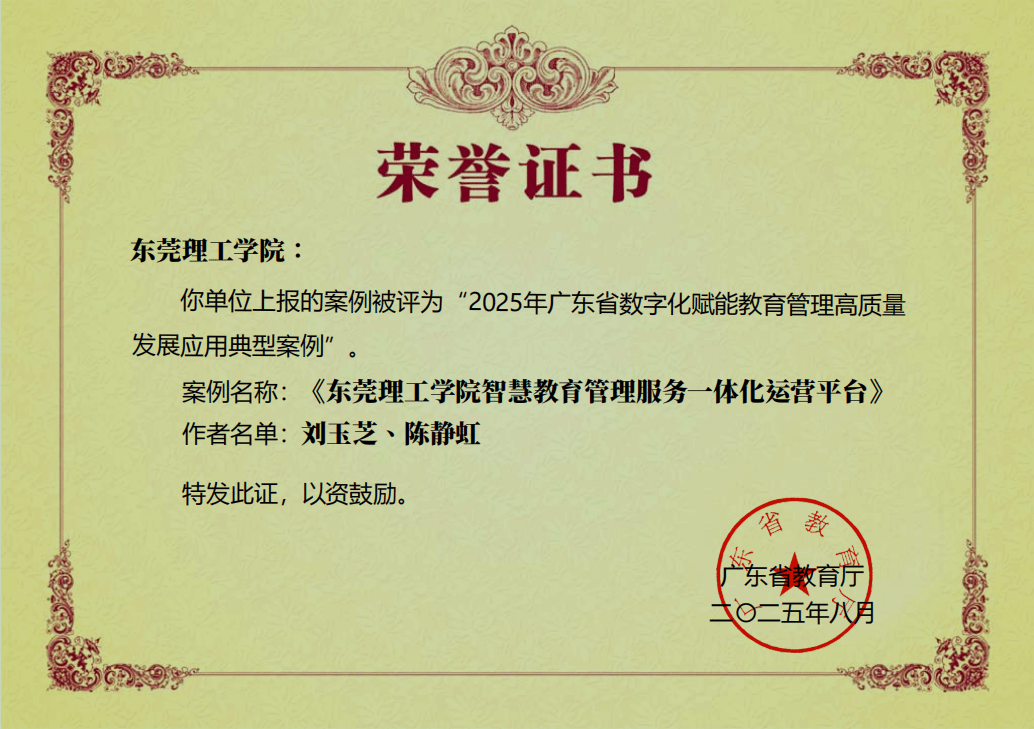 近日,广东省教育厅发布《关于对2025年广东省数字化赋能教育管理高质量发展应用典型案例予以表扬的通报》(粤教事务函〔2025〕10号),我校申报的《九九精品视频一区在线久久久久久久久久毛片精品美女|国产99久久久久久免费看|中文精品99久久国产|国产69精品久久久久9999|精品久久久久久中文字幕无码|亚洲熟妇无码久久精品国产精品99|精品国产天堂综合一区在线智慧教育管理服务一体化运营平台》案例成功入选。该案例系统总结了我校智慧教育管理服务一体化运营平台建设中的实践成果,梳理了深入推动数字化教育管理服务的创新思路与实施路径,为我省高等教育数字化转型提供了可复制、可借鉴的莞工样本。