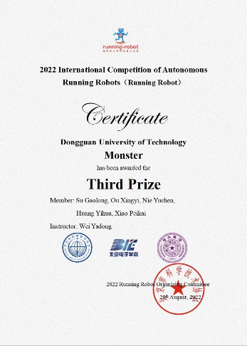 8月26日至28日, 2022国际自主智能机器人大赛在北京科学中心举行。在科技创新研究院的支持下,科技资源大数据研究与成果转化中心(以下简称中心)组织来自学校计算机科学与技术学院、电子工程与智能化学院、机械工程学院的学生组成参赛队伍参加。学生们在计算机学院魏小锐老师的指导下经过4个多月刻苦训练,竞赛分别获得标准赛三等奖和虚拟赛三等奖的好成绩。