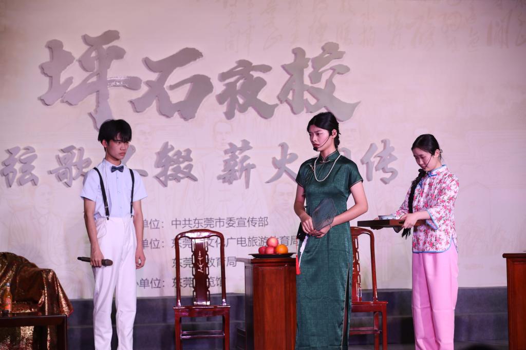 作为“坪石先生”专题展11项配套活动之一,“坪石夜校”大学生演出以华南高校在坪石办学期间师生的校园生活为线索,将展览中坪石先生们的办学、治学、教学生活和当代大学生对华南教育先师的追寻紧密结合起来。经管学子参演的节目有合唱《送别》、小组唱《杜鹃花》、朗诵《我们沿着乌蓝色的江水》、话剧片段《雷雨》,在模拟场景中倾听和讲述“坪石先生”的故事,再现当年坪石丰富的校园生活,共同追忆“坪石岁月”,传承莞邑文脉。