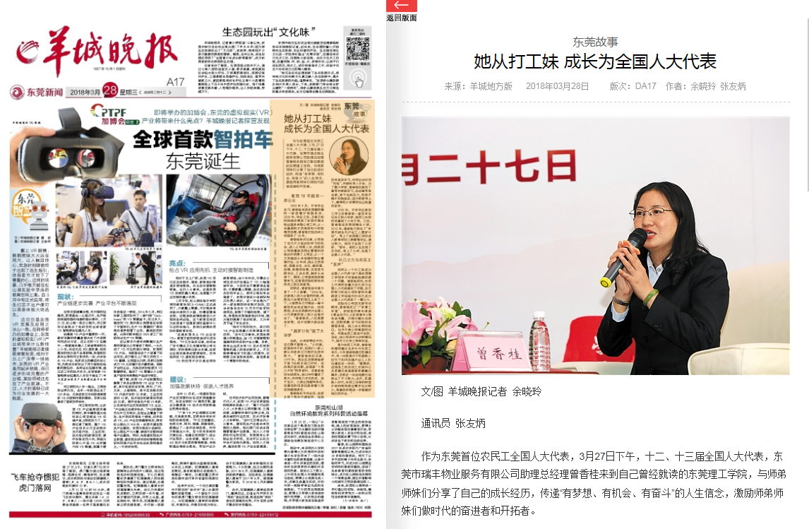 1999年9月,中专毕业实习,曾香桂来到东莞横沥镇的一家西餐厅做服务员。2000年,毕业之后,主修文秘的她就应聘到了东莞市瑞丰物业服务有限公司工作,从一名基层的文员做到如今的助理总经理,曾香桂已经在该公司服务了18年。