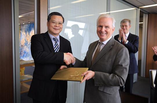 (3月23日,市委书记、市人大常委会主任吕业升在瑞士巴塞尔出席“深化国际产能对接 全力落实倍增发展”签约活动。)