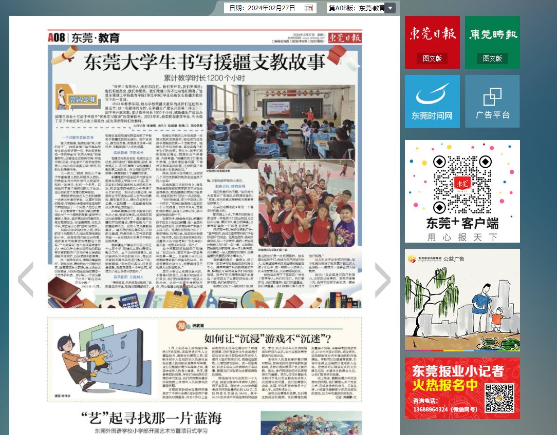 大一和大二期间,她加入了亲子学堂感恩义教队和暖风义教队,时常在东莞市内外进行义教活动,短则一到两天,长则一个多月。这些经历丰富了张婉仪的大学生活,也让她积累了深厚的教学经验。
