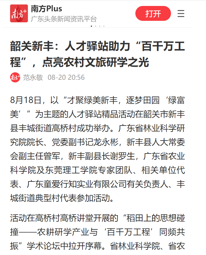 据了解,本次活动由新丰县乡村振兴人才驿站主办,新丰县丰城街道办事处、县文广旅体局、县总工会共同承办,丰城街道高桥村、广东童爱行知实业有限公司协办,依托乡村振兴人才驿站窗口,旨在对接粤港澳大湾区相关专业团队,促进农业与文旅的深度有机融合,解决项目发展的重点难点,推动农耕研学产业高质量发展,助力乡村产业升级,赋能“百千万工程”。