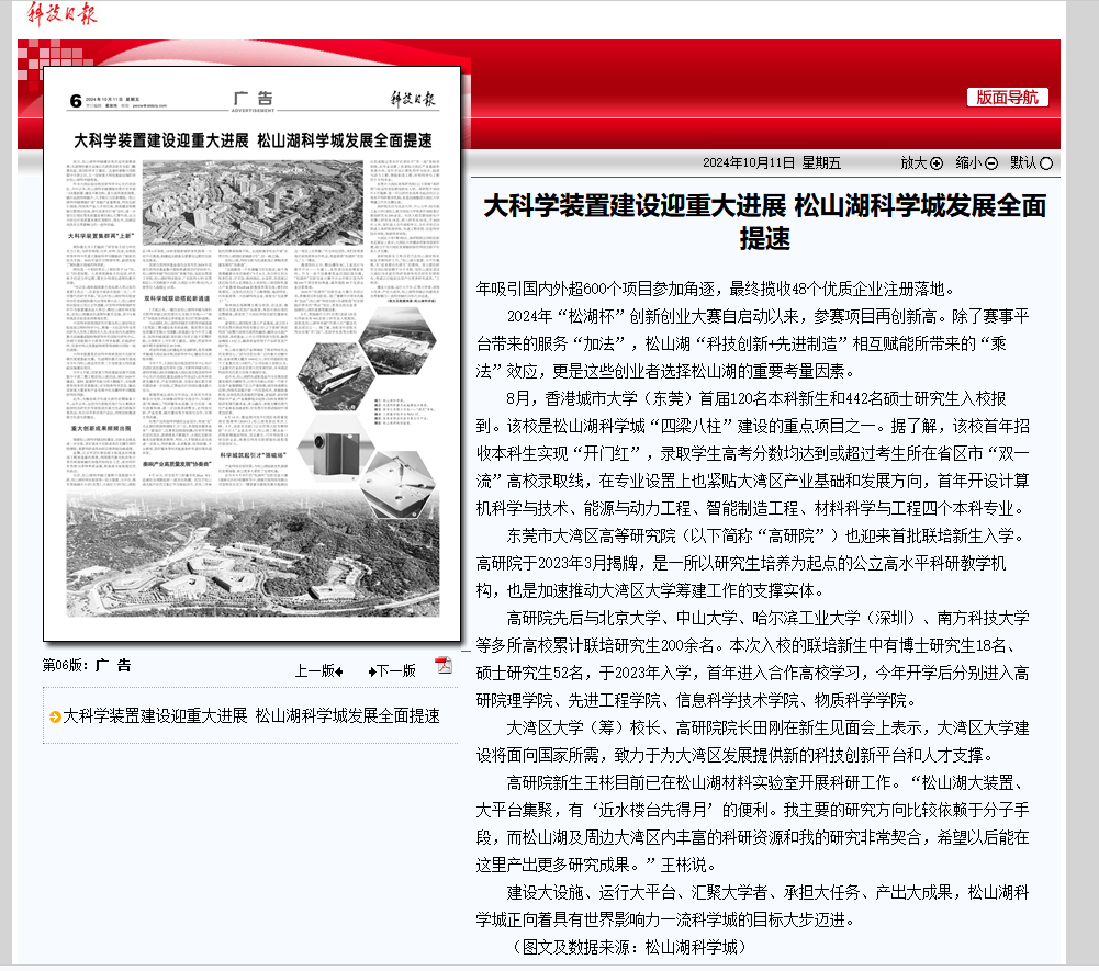 随着松山湖科学城加快建设,创新生态体系进一步完善,其对高水平创新成果的支撑作用持续增强,重要科研成果如雨后春笋般加速涌现。
