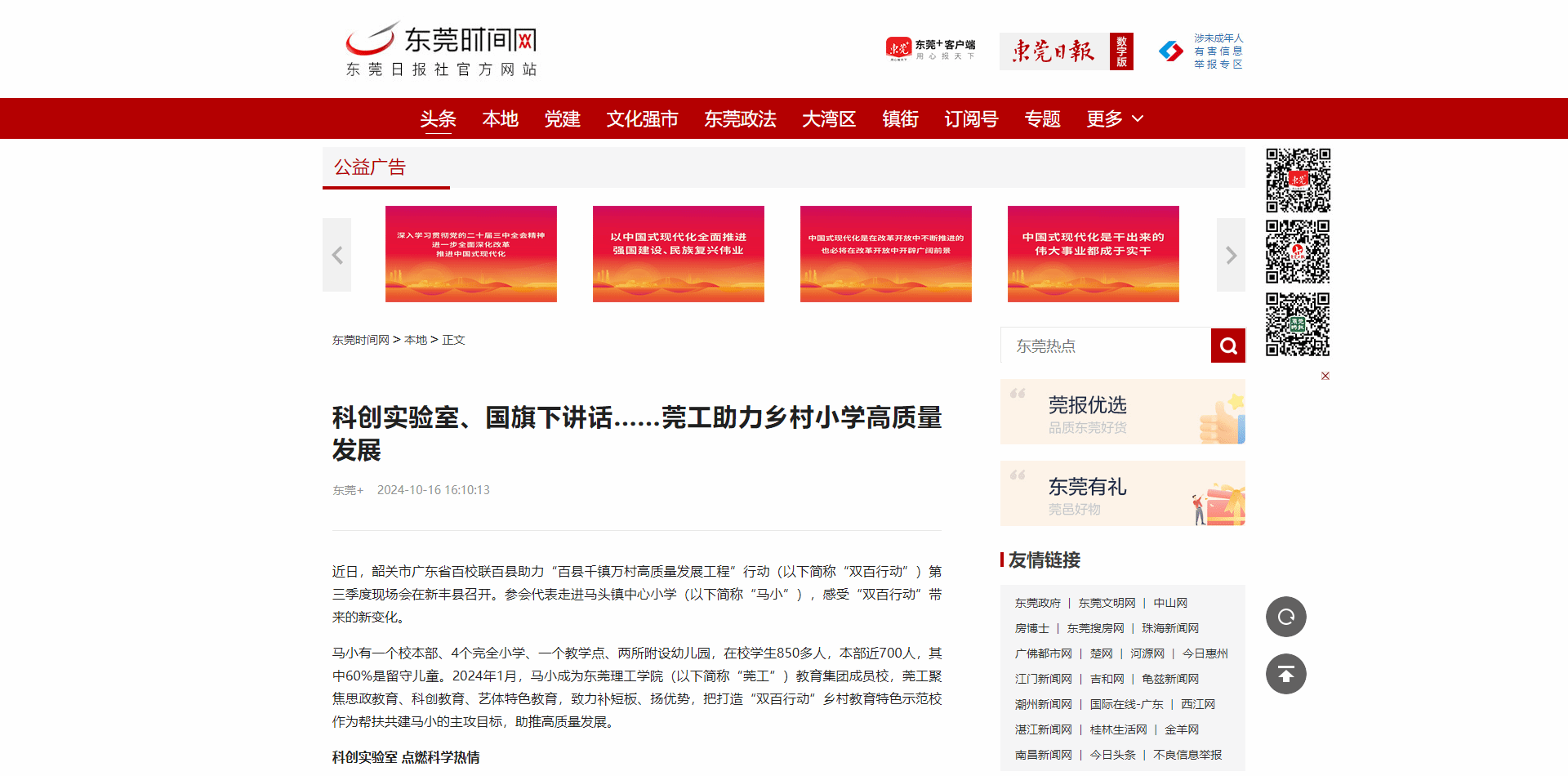 如何助力马小的科创教育实现“从0到1、从1到N”的蝶变?如何让乡村孩子也能接受优质的科创教育,为乡村学校的孩子种下探索科学的种子,书写乡村教育的新篇章?对此,莞工多方整合资源和力量,投入资金,“软硬兼施”推动科创教育在马小萌新芽、发新枝。