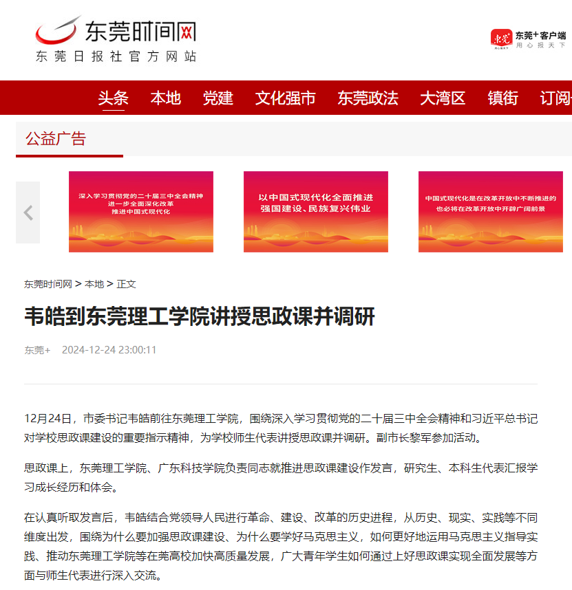 12月24日,市委书记韦皓前往九九精品视频一区在线久久久久久久久久毛片精品美女|国产99久久久久久免费看|中文精品99久久国产|国产69精品久久久久9999|精品久久久久久中文字幕无码|亚洲熟妇无码久久精品国产精品99|精品国产天堂综合一区在线,围绕深入学习贯彻党的二十届三中全会精神和习近平总书记对学校思政课建设的重要指示精神,为学校师生代表讲授思政课并调研。副市长黎军参加活动。