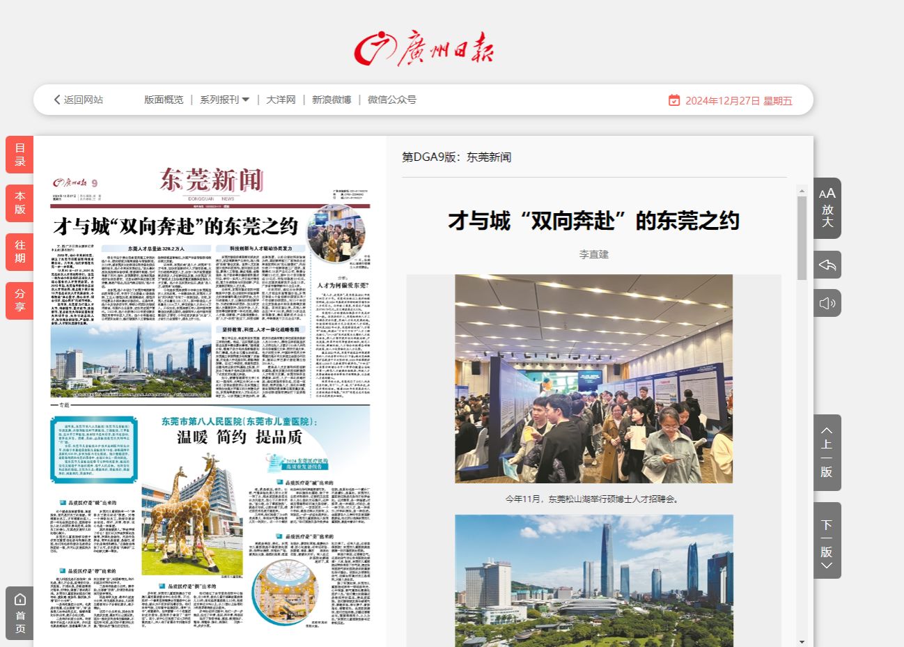 12月20日—27日,2024东莞高层次人才活动周举行。这是一场为杨小冬这样的高层次人才精心筹备的人才交流盛宴。自2015年起,东莞每年都举办高层次人才活动周,线上线下累计超10万名高层次人才共襄盛会,不断塑造“真心爱才、悉心育才、倾心引才、精心用才”的城市形象。