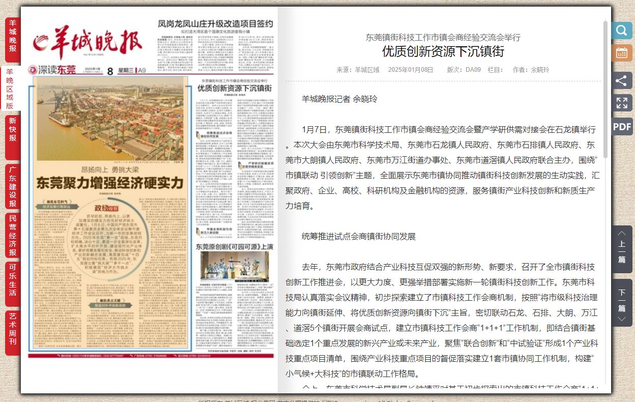 1月7日,东莞镇街科技工作市镇会商经验交流会暨产学研供需对接会在石龙镇举行。本次大会由东莞市科学技术局、东莞市石龙镇人民政府、东莞市石排镇人民政府、东莞市大朗镇人民政府、东莞市万江街道办事处、东莞市道滘镇人民政府联合主办,围绕“市镇联动 引领创新”主题,全面展示东莞市镇协同推动镇街科技创新发展的生动实践,汇聚政府、企业、高校、科研机构及金融机构的资源,服务镇街产业科技创新和新质生产力培育。