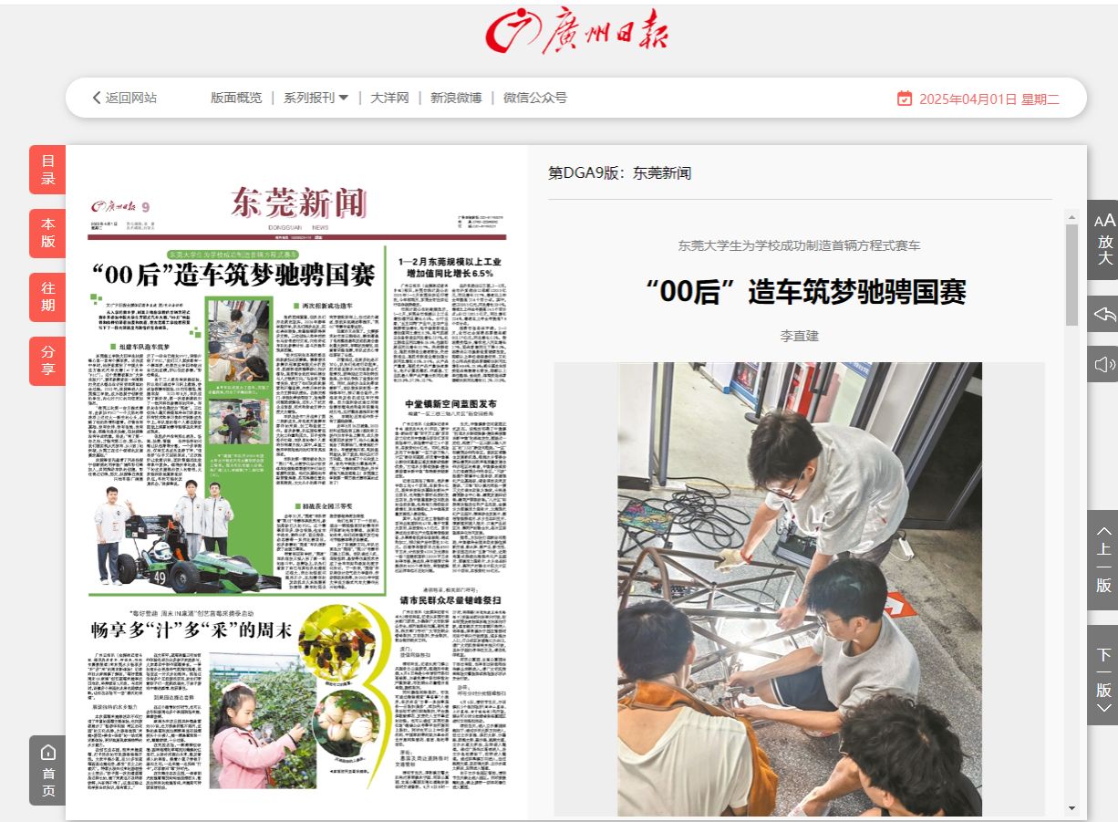 去年9月26日凌晨,2023材料成型控制工程2班的胡文波作为车手坐上赛车,点火按钮第四次被按下,他小心翼翼地给了两脚油门,慢慢地松开离合。车缓缓地向前,轮胎越转越快,到了坡底,他向左打尽方向盘。车身掉了个头向坡上冲,夜色中响起引擎轰鸣声,“莞01”号赛车顺利起步,并平稳地飞驰在道路上!九九精品视频一区在线久久久久久久久久毛片精品美女|国产99久久久久久免费看|中文精品99久久国产|国产69精品久久久久9999|精品久久久久久中文字幕无码|亚洲熟妇无码久久精品国产精品99|精品国产天堂综合一区在线第一辆方程式赛车真的成功了!