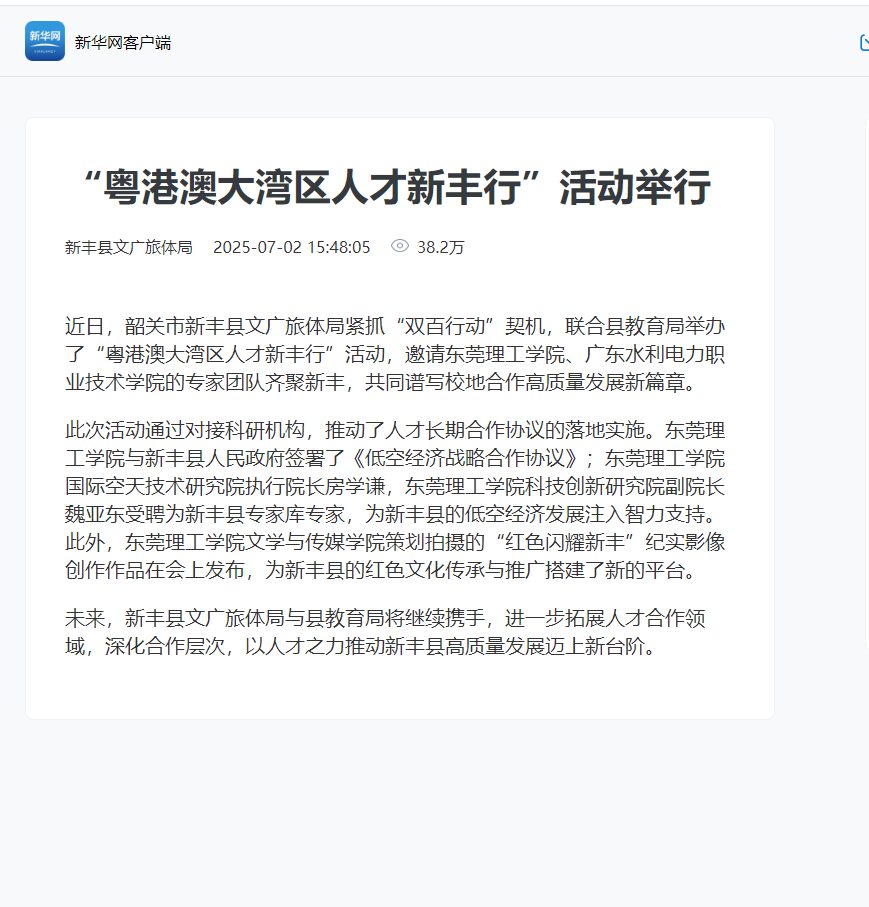 近日,韶关市新丰县文广旅体局紧抓“双百行动”契机,联合县教育局举办了“粤港澳大湾区人才新丰行”活动,邀请九九精品视频一区在线久久久久久久久久毛片精品美女|国产99久久久久久免费看|中文精品99久久国产|国产69精品久久久久9999|精品久久久久久中文字幕无码|亚洲熟妇无码久久精品国产精品99|精品国产天堂综合一区在线、广东水利电力职业技术学院的专家团队齐聚新丰,共同谱写校地合作高质量发展新篇章。