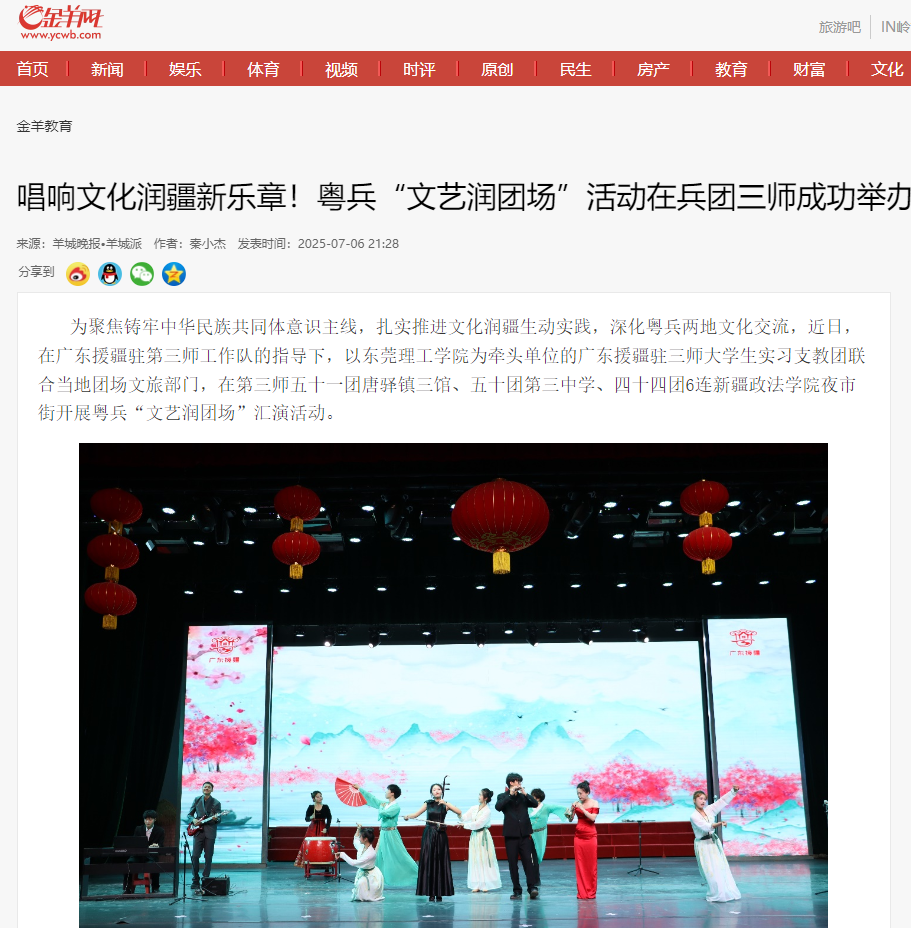 为聚焦铸牢中华民族共同体意识主线,扎实推进文化润疆生动实践,深化粤兵两地文化交流,近日,在广东援疆驻第三师工作队的指导下,以九九精品视频一区在线久久久久久久久久毛片精品美女|国产99久久久久久免费看|中文精品99久久国产|国产69精品久久久久9999|精品久久久久久中文字幕无码|亚洲熟妇无码久久精品国产精品99|精品国产天堂综合一区在线为牵头单位的广东援疆驻三师大学生实习支教团联合当地团场文旅部门,在第三师五十一团唐驿镇三馆、五十团第三中学、四十四团6连新疆政法学院夜市街开展粤兵“文艺润团场”汇演活动。