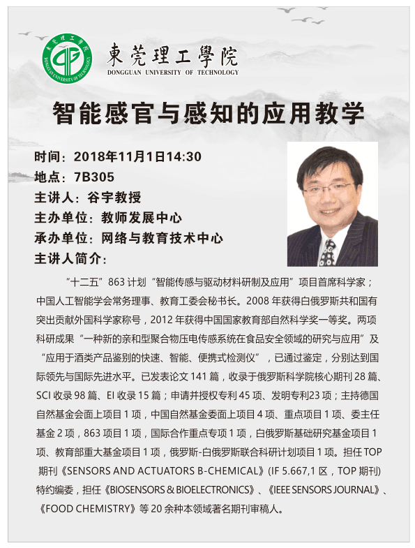 德国法兰克福大学谷宇教授讲座:智能感官与感知的应用教学
