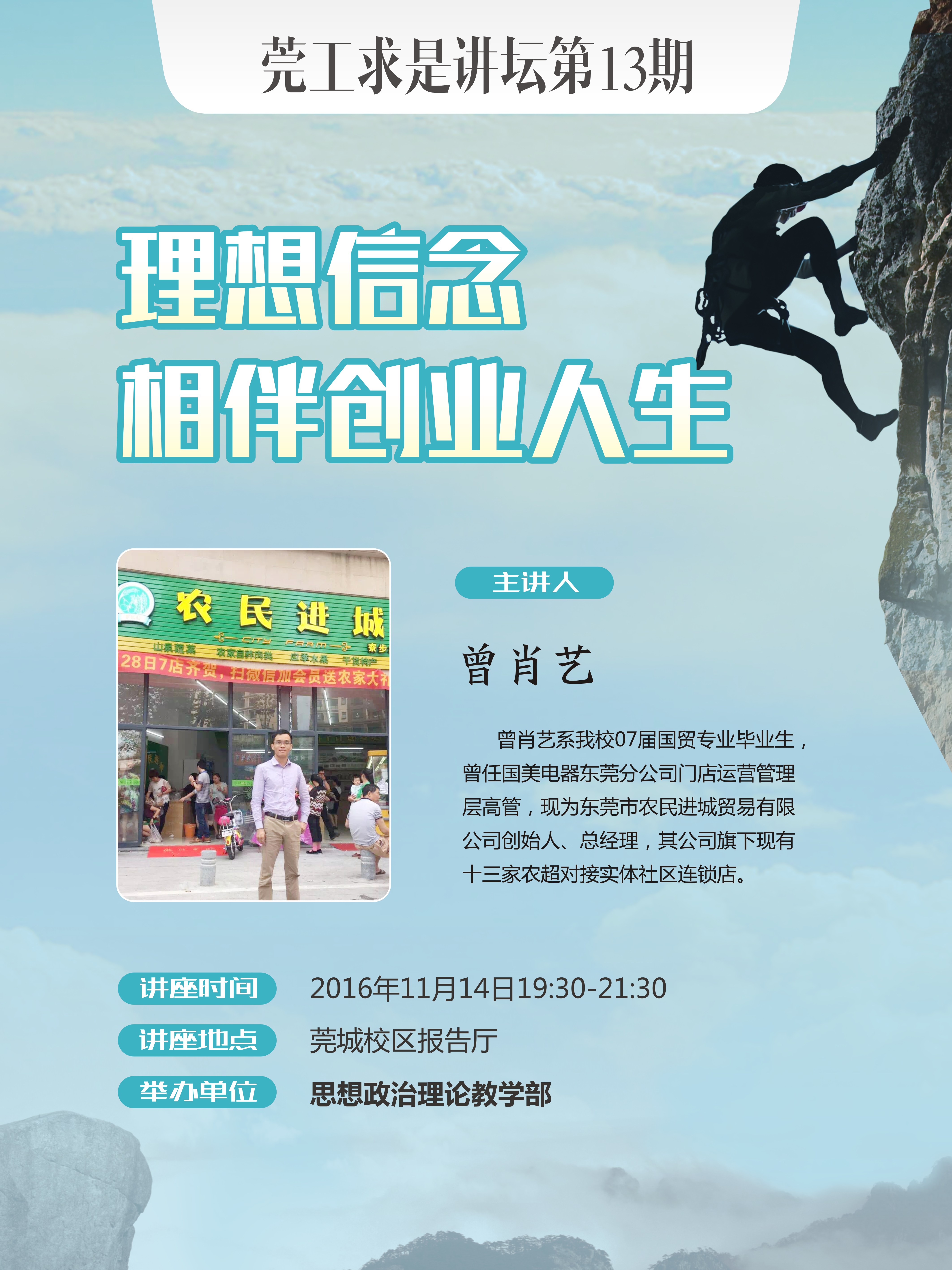 莞工求是讲坛第13期:理想信念相伴创业人生
