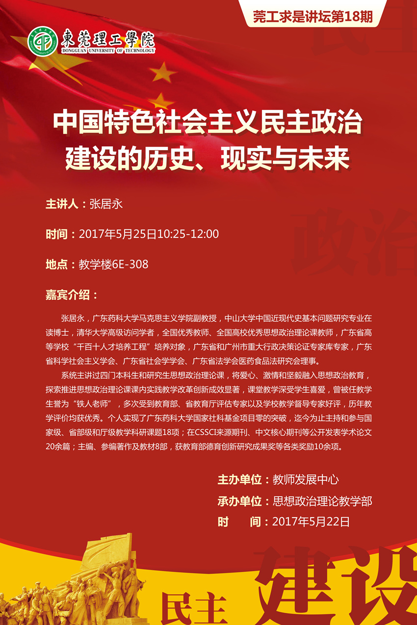 莞工求是讲坛第18期:中国特色社会主义民主政治建设的历史、现实与未来