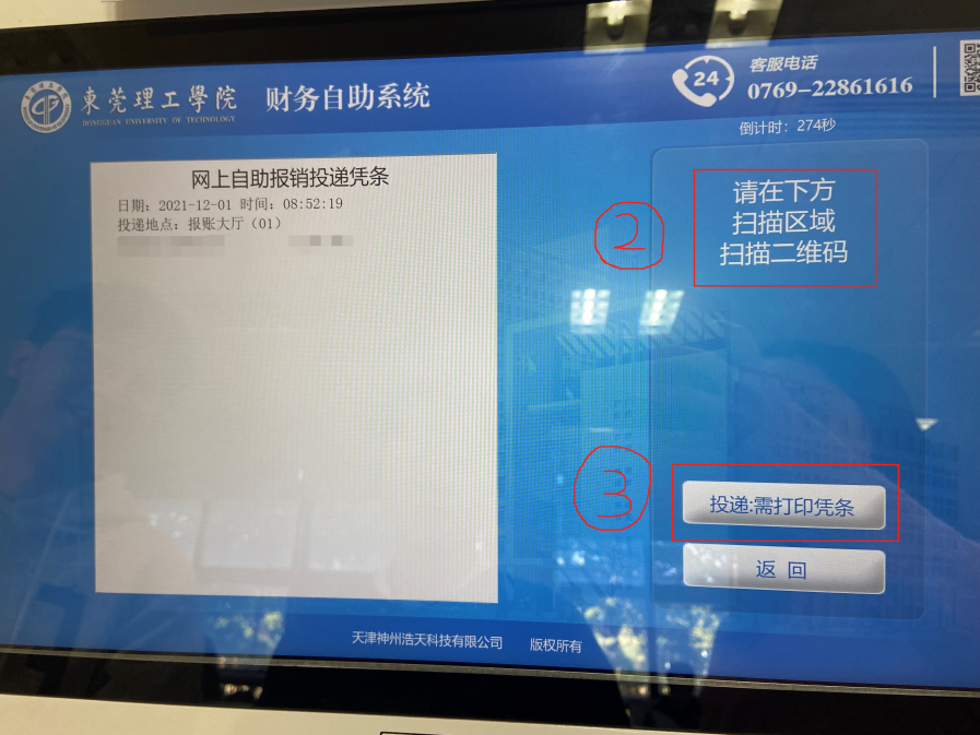 4.凭条打印完成后,将报销单装入文件袋中,并将文件袋放进投递口。