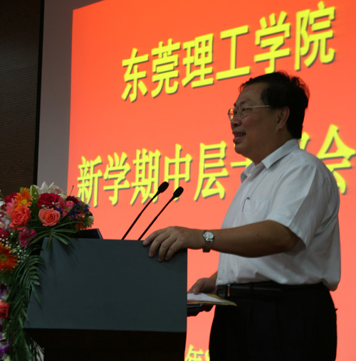 刘树基在会上作了重要讲话。他说,省市政府非常重视高等教育发展,其次,东莞的经济、社会发展需要高等教育支持以及人民群众对高等教育发展提出了新的要求.这些无疑为我们学院的发展提供了良好的环境,这既是机遇也是挑战,要求我们扎实开展工作,创新工作思路,办好理工学院,为东莞城市战略目标的实现贡献力量。