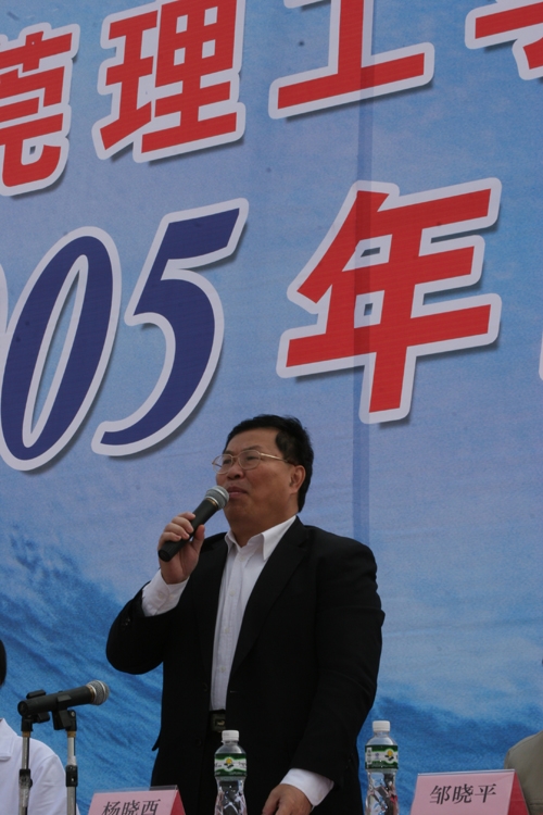 学院临时党委副书记王江水同志致开幕词,学院临时党委副书记、院长杨晓西教授宣布2005年田径运动会开幕。