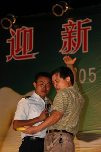 王江水副书记在表演即兴小魔术,引来全场观众的极大轰动