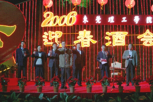 院长杨晓西教授在酒会上致词时说:“在刚刚过去的2005年,学院的各项事业都有了跨越式发展,取得了可喜的进步,这些成绩的取得,离不开每一位老师、每一位干部职工的辛勤劳动和默默奉献,是你们,为学院提供了发展的不竭动力和创造力;是你们,推动着学院这艘巨轮,乘风破浪,鹏程万里……”他代表学院党委、行政对一年来辛勤工作的教职员工表示感谢。