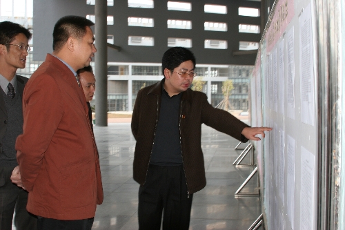 督导组同志在检查我院“增强团员意识主题教育”活动宣传栏
