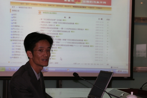 学生处副处长兼团委书记彭晓波同志向督导组介绍我院团组织建设