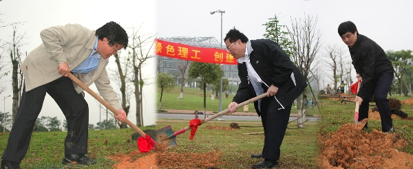 昨日和前日,我院教职员工在松山湖校区开展植树活动。学院领导杨晓西、王江水、邹晓平和广大教职工在美丽的松山湖校区栽下一棵棵树苗。