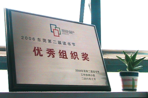 今天上午,东莞第二届读书节总结表彰大会在市图书馆多功能报告厅举行,表彰大会上对读书知识竞赛获奖单位和个人、“读书、成长、人生”演讲比赛获奖个人、东莞“学习之家”以及2006东莞第二届读书节活动优秀组织单位等进行了表彰。 我院因较好地组织学生参加了“读书与成长”征文比赛,被评为征文比赛优秀组织奖;并因牵头承办了读书知识竞赛,取得了良好的效果,被评为2006东莞第二届读书节活动优秀组织奖。