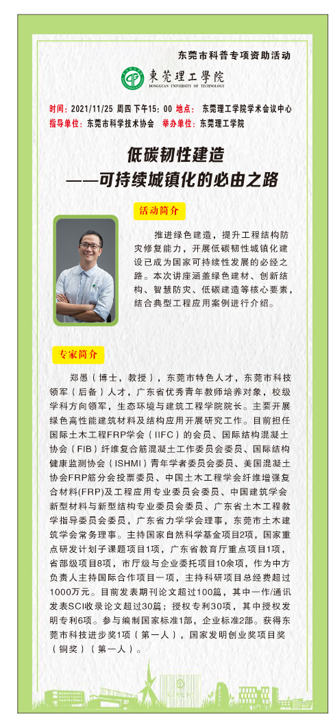 莞工科普系列活动|2021年第7场:低碳韧性建造——可持续城镇化的必由之路