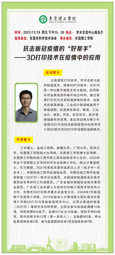 莞工科普系列活动|2021年第6场:抗击新冠疫情的“好帮手”——3D打印技术在疫情中的应用