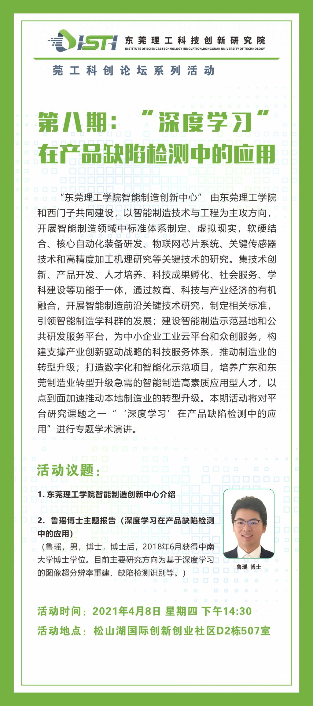 莞工科创论坛|第八期:“深度学习”在产品缺陷检测中的应用