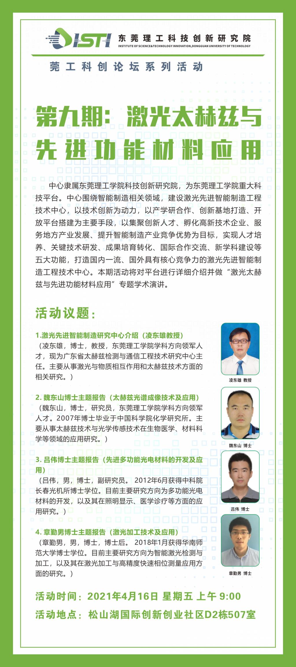 莞工科创论坛|第九期:激光太赫兹与先进功能材料应用