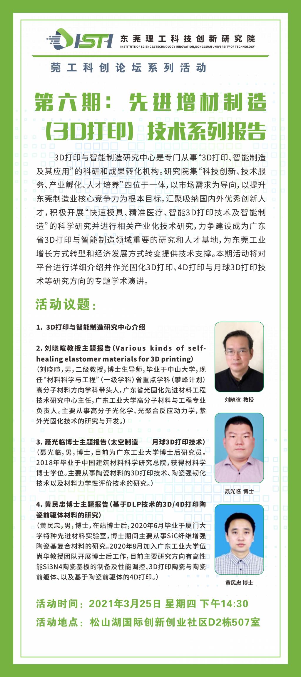 莞工科创论坛|第六期:先进增材制造(3D打印)技术系列报告