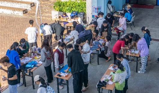 为了营造积极健康的校园心理文化氛围,培养学生积极心理品质,引导学生走进自然,亲近自然,感受生命与艺术创作带来的身心和谐。11月28日,由党委学研工部、学生处心理健康教育与咨询中心主办,阳光心理协会承办的“冬天的暖心事”第一届园艺心理贴画创作活动在学思广场举行。此次活动吸引了200多人参加。小组和个人共完成了70多幅原创作品。