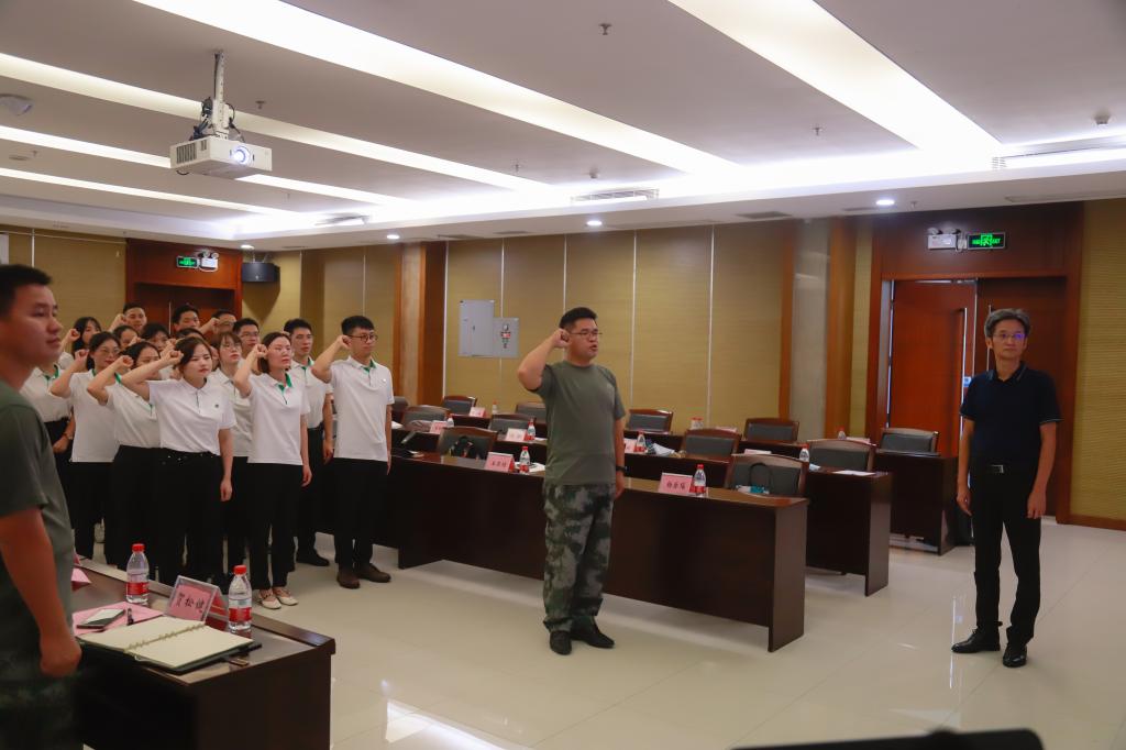 随后,由彭晓波监誓、黄金和领誓,全体辅导员进行了入职宣誓。