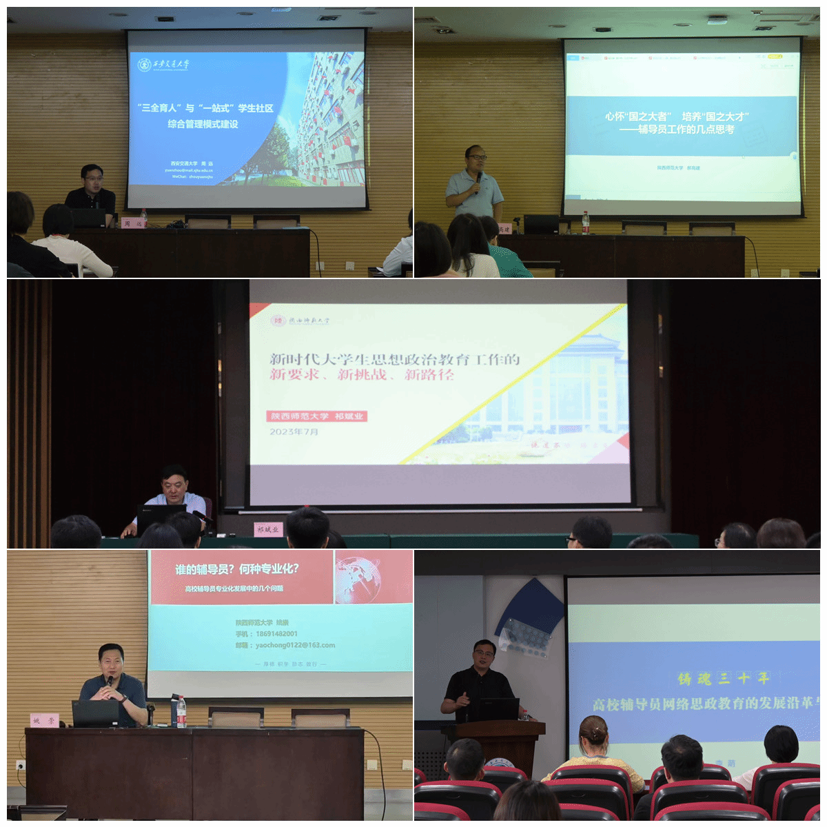 研修班邀请了陕西师范大学党委学工部(武装部、学生处)副部(处)长祁斌业,教育部中青年骨干、教育部心指委专家组成员姚崇,教育部高校思想政治工作中青年骨干、西安交通大学航天航空学院党委书记周远,陕西高校网络思政中心办公室主任、陕西高校思政研究会常务副秘书长李萌,陕西省名优辅导员、陕西省辅导员工作室主持人郝高建等多位学生工作知名专家学者授课。授课内容包括新时代大学生思想政治工作新要求、高校学生常见突发事件的应对与处置、高校辅导员工作室建设的思考与实践、“一站式”学生社区综合管理模式建设概况与思考等内容。课后,授课专家与学员进行了热烈的探讨。