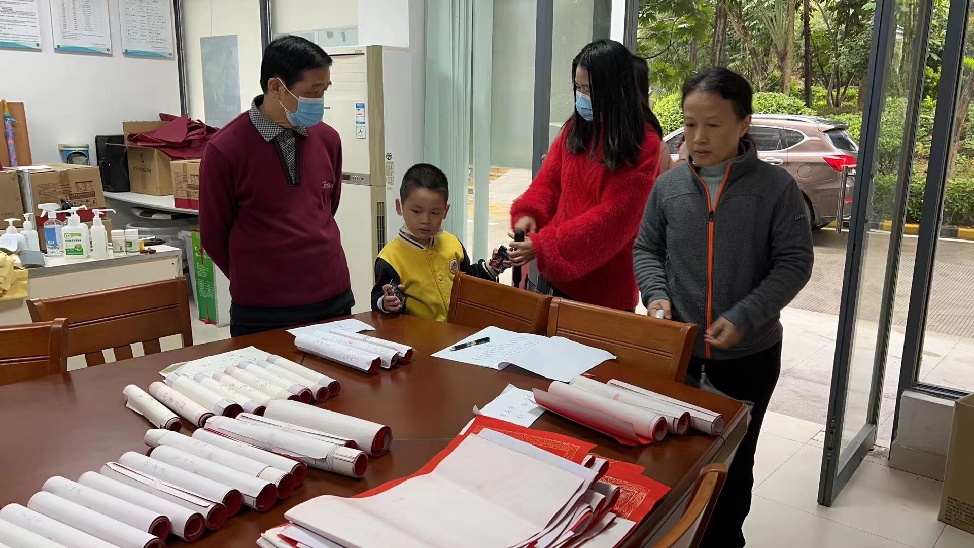 本次送春联活动由校工会主办、校教职工书画协会承办、校教师村业主委员会协办。校教职工书画协会的杨万江、杨继龙、李益民、宋跃、莫振轩五位老师,为全校教职工妙笔挥毫写春联。为了降低传染风险,本次活动采用线上预订线下取的方式进行,老师们需提前在线上预订春联,同时还可以指定内容和写春联的书法家。