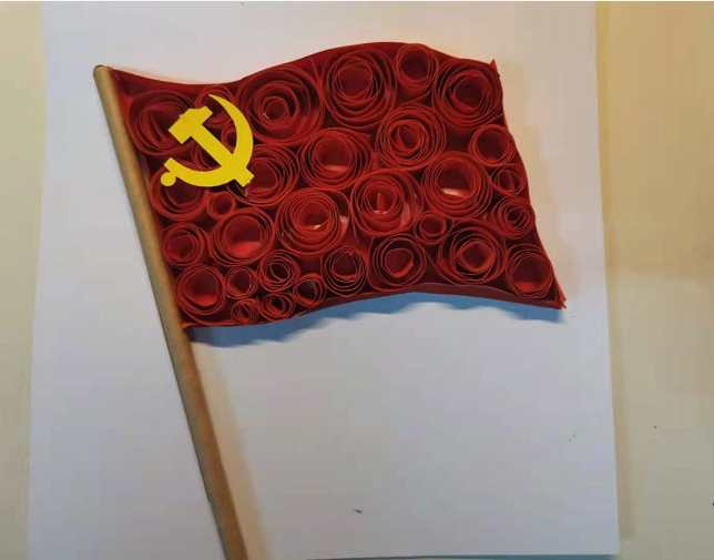 随后,现场通过一个小短片回顾了同学们积极践行党史学习教育,参与服务的过程。同学们也用情景剧演绎的方式表达出对革命先辈们的敬佩,并进行了大约半小时的手工制作活动。通过亲手制作党旗党徽,进一步加深了同学们对中国共产党的了解。