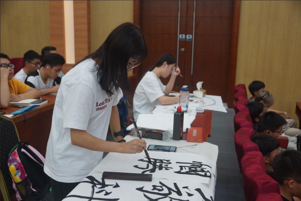 “成为为人民负重前行的人,为人民守护岁月静好的人”是陈薇院士的梦想。陈梓炀、张奇欢、李莉、李淑柠等同学带来歌曲《我的梦》,用嘹亮而有力量的歌声,歌颂了陈薇院士无私赤诚、勇于奉献精神,也表达了化能学子心中有理想,肩上有责任的信念。“干惊天动地事,做隐姓埋名人”,任何一个重要的科学发现,都离不开无数科技工作者的不慕名利、潜心研究、为国家争光的奉献精神。杨浩、匡永欣、许漫媛三位同学带来科学经典朗读《青年与科学家精神》。一声声动人的声音,铿锵有力的把对国家的爱和对科学家的敬佩之情传达到每个人心中。随后,谢树齐、黄观伟、宋莹莹、刘建锟、曾静雅和各位合诵的同学带来诗朗诵《祖国颂》,袁皓俊、陈可盈、麦颖欣、邓天娇、陈小静五位同学展示现场创作的书画作品,抑扬顿挫的朗诵声、笔酣墨饱的书法体现了化能学子对中华文化的崇敬之情的同时,亦展现了化能学子作为中国人的那份骄傲自豪。