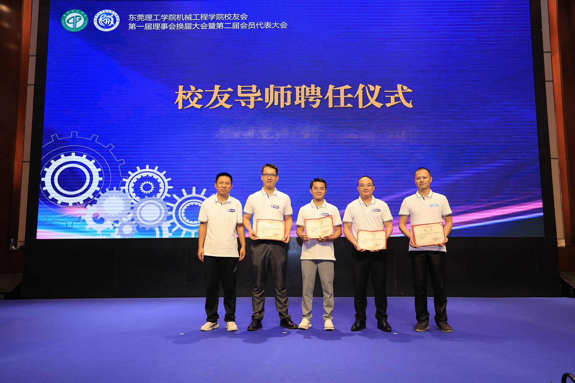 机械工程学院院长(左一)孙振忠为校友导师颁发证书