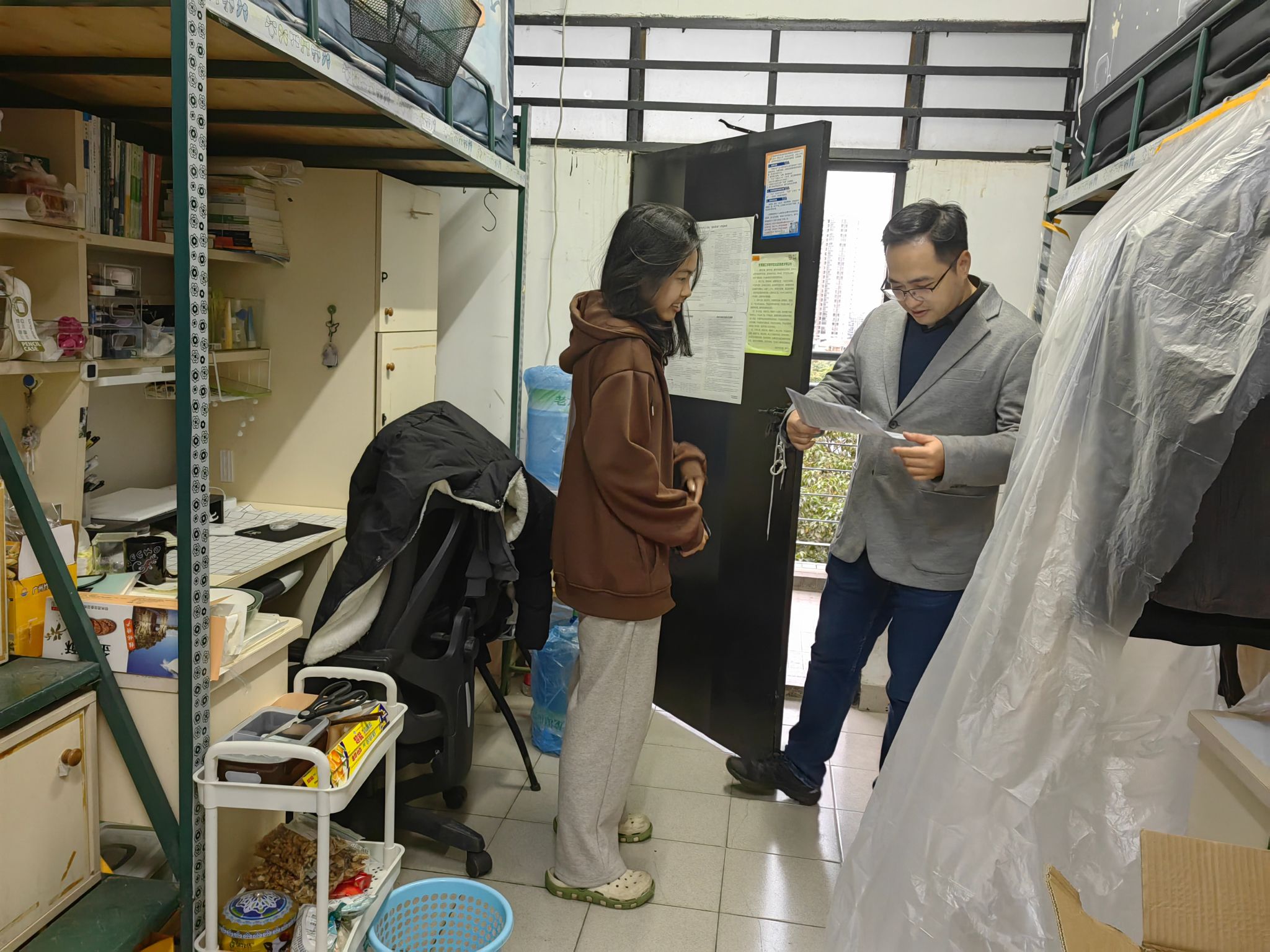 22日以来,学院组织安全大检查1次,与研究生院、安保处等开展研究生宿舍联合安全检查1次,走访留校本科生宿舍5次。值班领导将安全检查作为常规任务,常态化开展对各实验室的安全检查,对发现的安全隐患均已落实整改。
