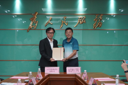 6月15日,东莞华港国际贸易有限公司与我校举行捐赠签约仪式暨教学实习基地牌匾颁发仪式。材料科学与工程学院与东莞华港国际贸易有限公司在双方代表见证下签订了捐赠协议,学校校友工作办公室、基金会办公室主任崔学海向卢瑞明颁发荣誉证书和赠送纪念品,材料科学与工程学院党委书记君光向卢瑞明颁发教学实习基地牌匾。