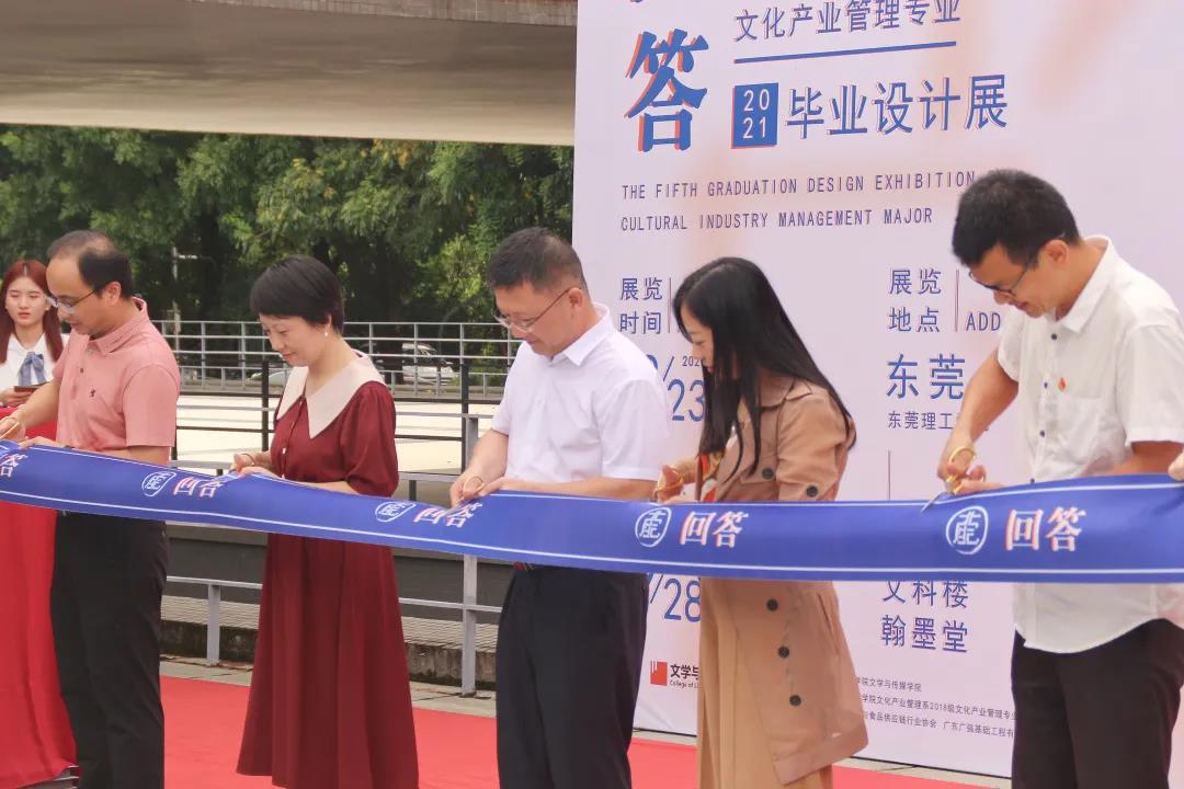 开幕仪式上,文学与传媒学院院长田根胜,东莞市餐饮与食品供应链行业协会会长、广东嫣然唐文化传播有限公司总经理嫣然,文学与传媒学院党委书记阎江为本次毕业展致辞。