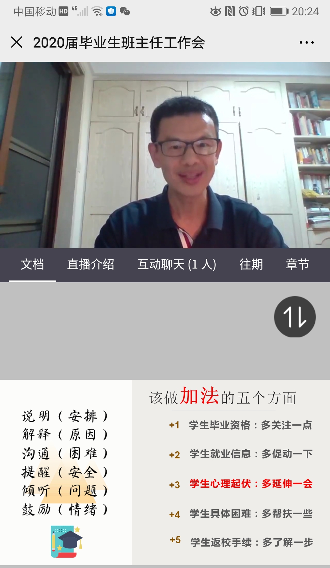 加强联系,及时掌握学生情况。5月12日晚,学院党委书记阎江组织部分教师党员和毕业班班主任召开线上视频会议,动员他们发挥个人优势,深入学生当中,密切与毕业生的联系,及时掌握了解学生的思想动态和身体情况,发现异常情况及时处置和报告。要求他们对学生的毕业问题要多关注,对学生的就业问题要多关心,对学生的心理问题要多留意,对学生的困难问题要多帮扶,对学生的返校手续要多了解,切实做到详细说明、耐心解释、无缝沟通、爱护提醒、善意倾听、热情鼓励。